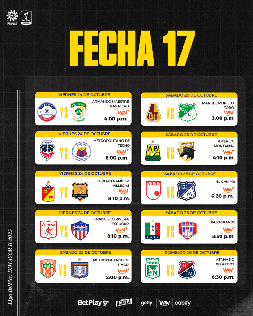 Gracias a LIMALEMON, esta es la programación de la fecha 16