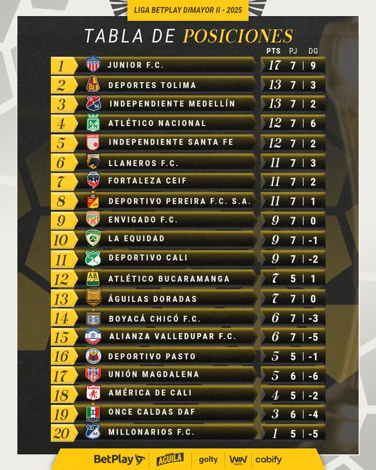 La Tabla de posiciones es patrocinada por UNIQUE TECNOLOGY en Cra7 No180-75 CODABAS Local 18E Módulo 2, justo al lado del Cajero de Servibanca, accede a sus productos y promociones en https://www.instagram.com/uniquetecnology