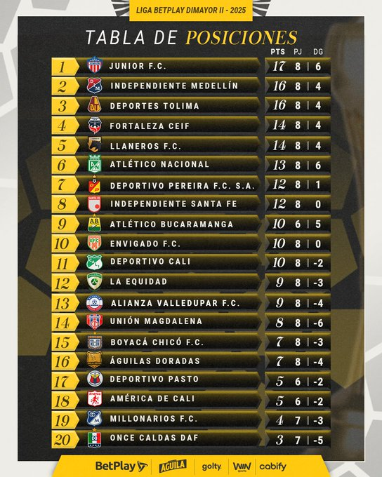 La Tabla de posiciones es patrocinada por UNIQUE TECNOLOGY en Cra7 No180-75 CODABAS Local 18E Módulo 2, justo al lado del Cajero de Servibanca, accede a sus productos y promociones en https://www.instagram.com/uniquetecnology